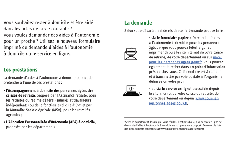 Il permet aux séniors et à leurs proches, de formuler dorénavant sur un seul document, une demande ou un renouvellement de plan d'aide au titre de :