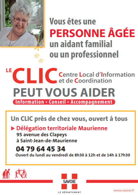 Inscriptions aurpès dy CLIC : 04.79.64.45.34 ou clic-maurienne@savoie.fr